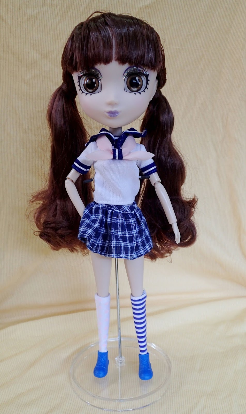 When I went to buy mine, the only two in stock were Namika and Shizuka. Shizuka nearly won the day because she has one blue eye and one green eye but her white and powder pink outfit seemed washed out to me, I preferred Namika's school outfit and odd socks. Plus Namika has pigtails, so it wasn't really a hard decision.