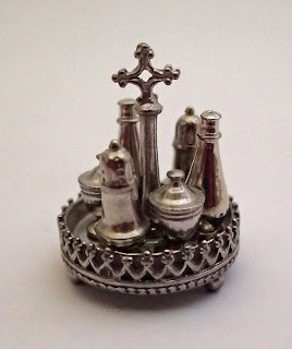 This week for Tiny Tuesday I have two dollhouse items by Warwick Miniatures. Warwick Miniatures are made by Phoenix Model Developments who specialise in white metal miniatures. Some of their stuff is amazing in it's detail and historical accuracy. Much of it comes as kits of cast pewter pieces that require painting and assembly. The two items I have today are polished white metal that look rather like silver (but are probably pewter) so they didn't require painting.